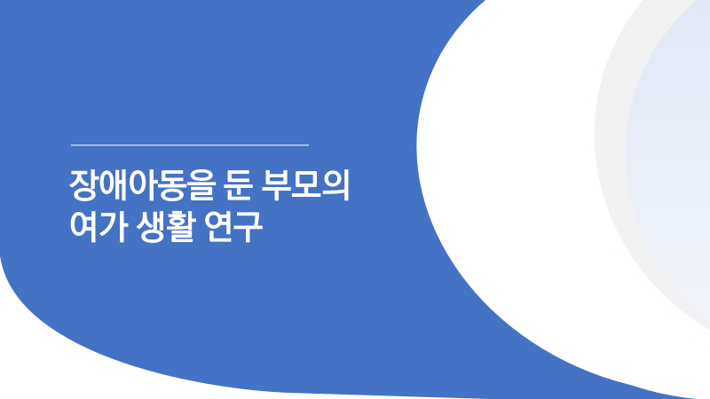 장애아동을 둔 부모의 여가 생활 연구